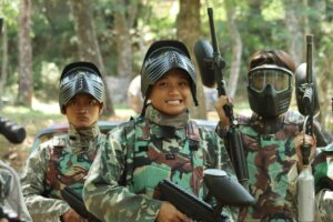 Pandangan terhadap permainan paintball dapat bervariasi tergantung pada keyakinan agama dan nilai-nilai moral masing-masing individu. Sebagian besar agama tidak secara eksplisit mengomentari atau melarang permainan paintball secara khusus. Oleh karena itu, pemahaman dan interpretasi individu terhadap prinsip-prinsip agama mereka memainkan peran penting dalam penilaian mereka terhadap permainan ini.